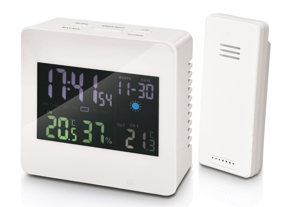 Fonctions : pendulette-réveil, calendrier, thermomètre, hygromètre et prévision météorologique. Fonctionne avec câble DC-5V sur USB fourni ou 3 piles AAA non fournies. Dimensions 82 mm x 82 mm x 34 mm. Livrée en boite individuelle illustrée.